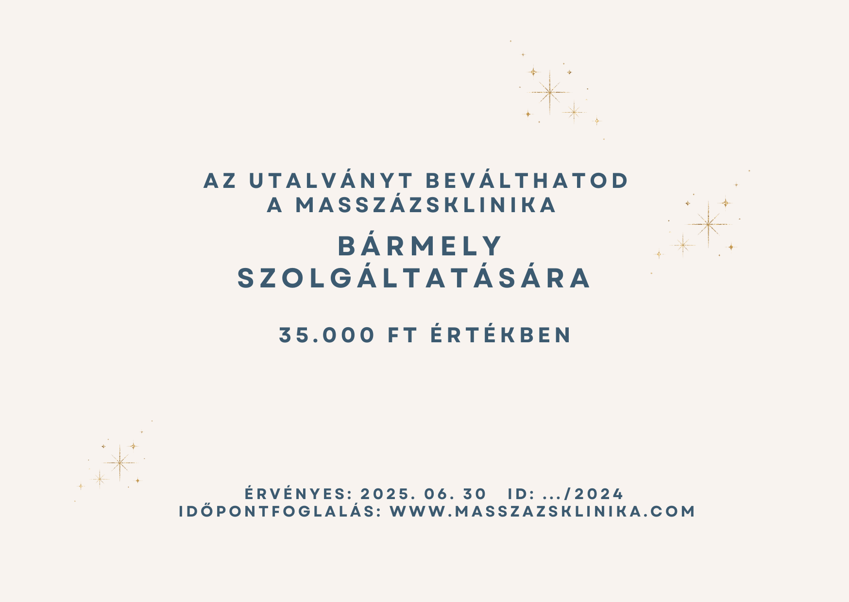 A Masszázsklinika bármely szolgáltatásásra beváltható ajándékutalvány.